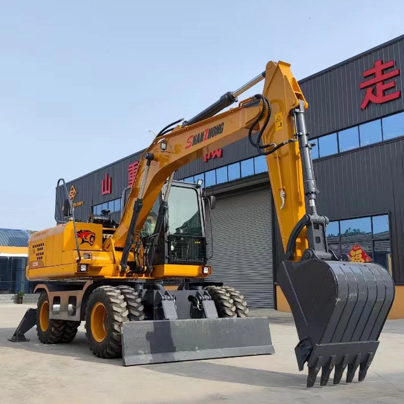 Колесный экскаватор SZL150 имеет высокопрочное интегрированное колесное шасси с усиленными шинами, обеспечивающими отличную адаптацию к грунту и